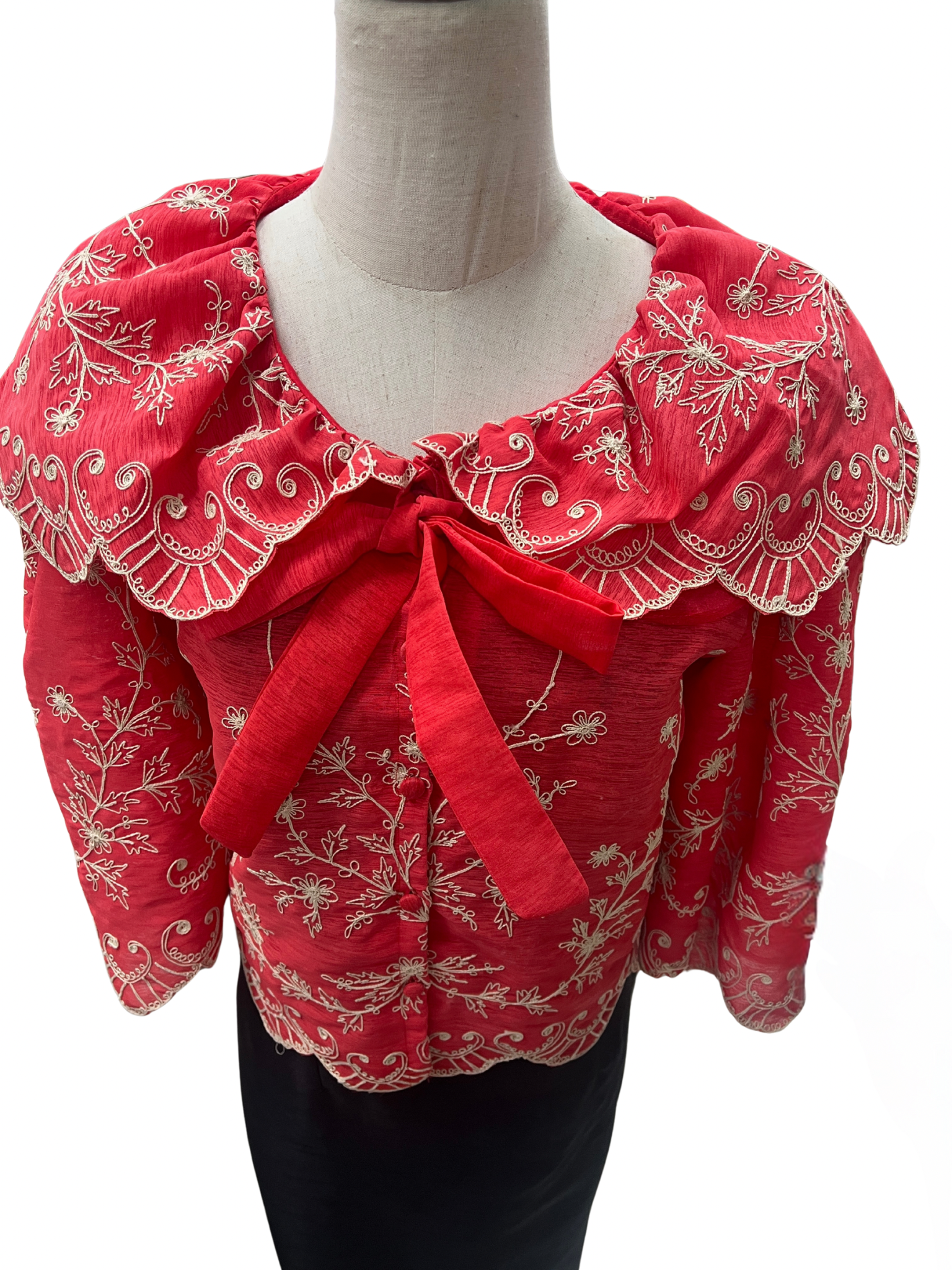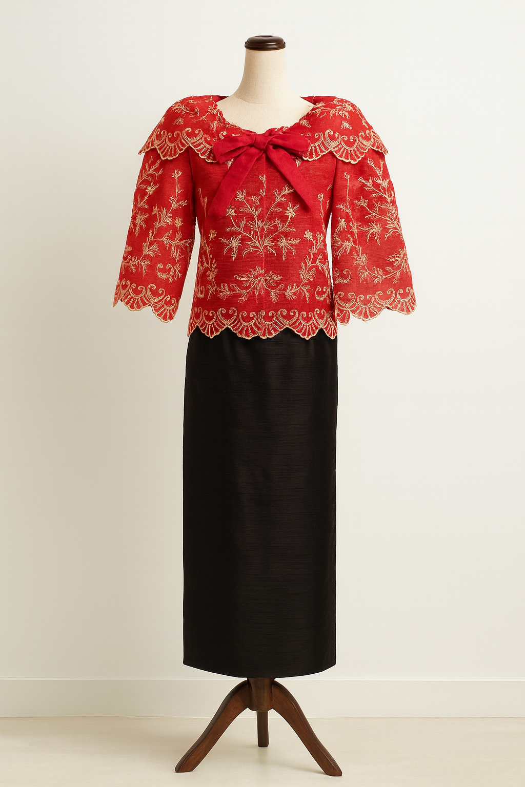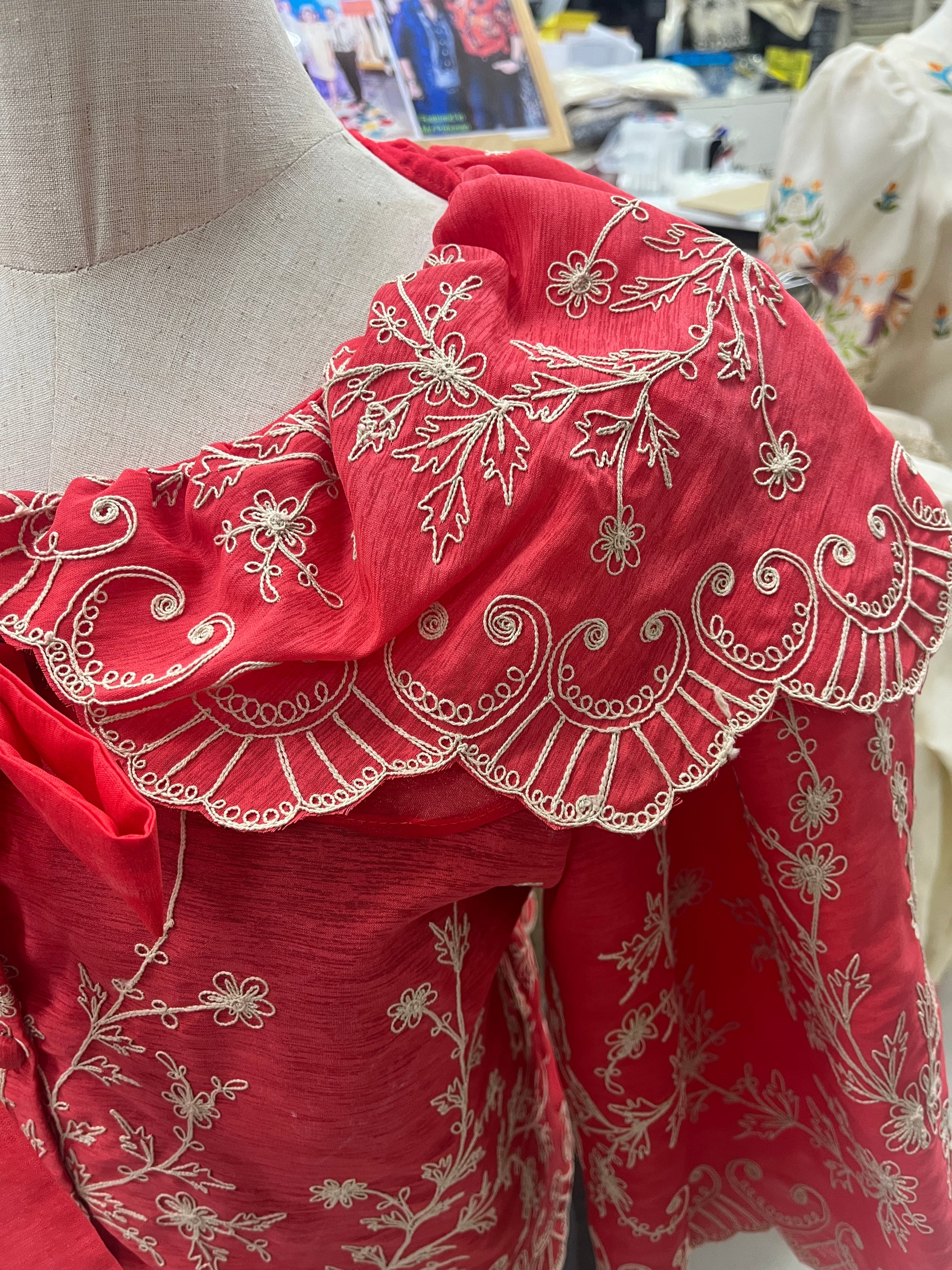 A timeless Filipiniana blouse crafted from fine Jusilyn fabric, featuring intricate floral embroidery and a scalloped hem. Designed with elegance and tradition in mind, this piece is perfect for formal occasions and cultural celebrations.
